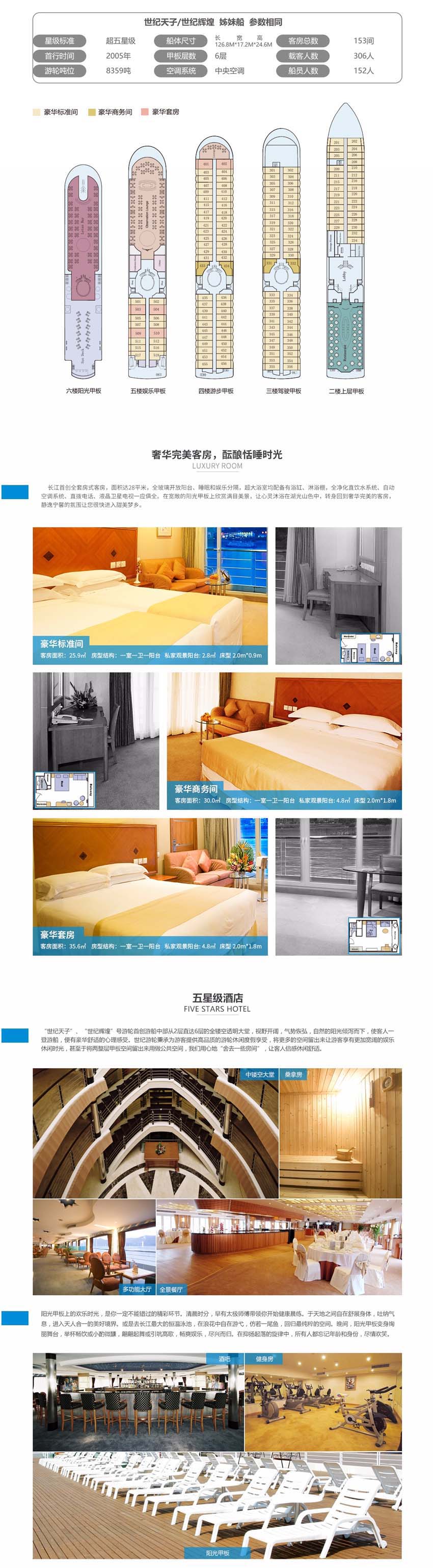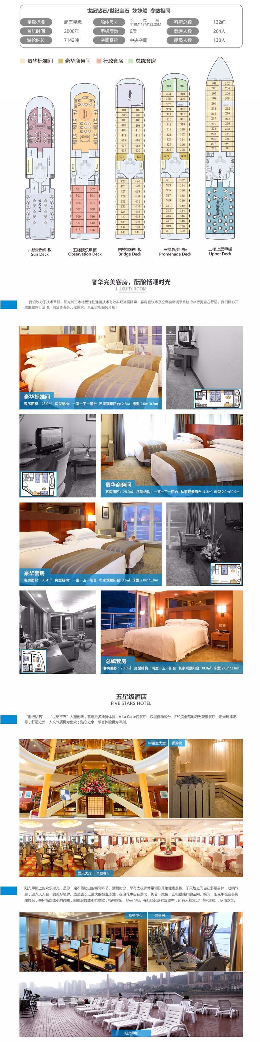 于2013年震撼問(wèn)世,集七大頂尖高新技術(shù)和五大長(zhǎng)江奢華首創(chuàng)為一體的超六星級(jí)豪華游輪!首次采用“電力推進(jìn)和舵槳合一”的國(guó)際頂尖技術(shù),全船每一處都精選零油漆環(huán)保材料,是長(zhǎng)江最環(huán)保的高科技靜音游輪,舒適度和安全性遠(yuǎn)非其他游輪可比擬!